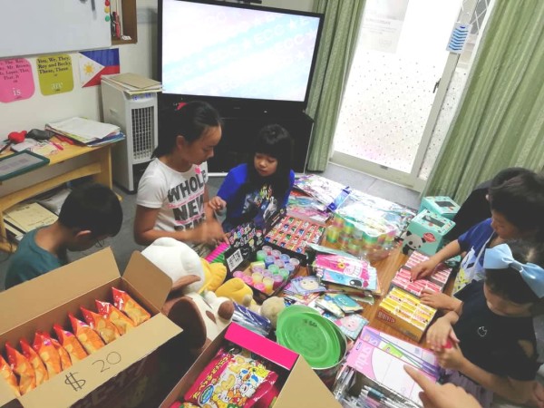 ポイント交換は「買い物ごっこ」の形式で行い、レッスンで扱った「買い物をするときの表現」の復習にもなりました。